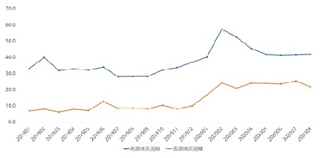 自2020年上半年租賃市場的季節(jié)性規(guī)律遭到打破,傳統(tǒng)旺季持續(xù)延期后,租客持需觀望、業(yè)主持房等待致使住房租賃市場房源成交周期、客源成交周期齊齊上漲,達(dá)到近兩年內(nèi)最高點(diǎn)。