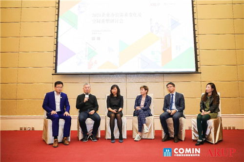 活動最后,中國建筑運營管理研究院院長劉永主持圓桌討論,與奧雅納董事劉鵬、嘉里中心總經(jīng)理盧書成、58集團行政副總裁陳惠聰、戴德梁行研究部主管魏東以及Steelcase北京地區(qū)銷售總監(jiān)劉茜,圍繞未來辦公租戶需求、業(yè)主創(chuàng)新解決方案、智慧辦公與專業(yè)服務(wù)等話題,展開交流分享。