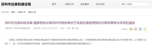 房訊網(wǎng)訊 近日,深圳市住房和建設局聯(lián)合國家稅務總局深圳市稅務局發(fā)布《關于實施住房租賃稅收優(yōu)惠政策有關事項的通告》,進一步明確住房租賃稅收優(yōu)惠政策有關事項。深圳市住房建設局于每月16日將住房租賃企業(yè)名單、專業(yè)化規(guī);》孔赓U企業(yè)名單以及保障性租賃住房項目認定書提供給深圳市稅務局,同時在市住房建設局官網(wǎng)和租賃平臺將住房租賃企業(yè)、專業(yè)化規(guī);》孔赓U企業(yè)名單予以公布。
