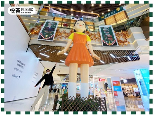 而UG中庭舞臺(tái)中,網(wǎng)劇同款高還原度的超6米巨型女孩人偶絕對(duì)是當(dāng)之無(wú)愧的C位,吸引了大波粉絲前往參觀打卡。同時(shí)還可以看到,一大批面具人在館內(nèi)巡游,隨時(shí)派發(fā)“游戲懸賞令”任務(wù)卡片。當(dāng)熟悉的BGM響起,腎上腺素瞬間激增,驚悚恐怖的氛圍加上最直觀的視覺(jué)感受,一時(shí)間在場(chǎng)內(nèi)激起超高人氣的互動(dòng),也在購(gòu)物之余增添了一絲娛樂(lè)休閑色彩。