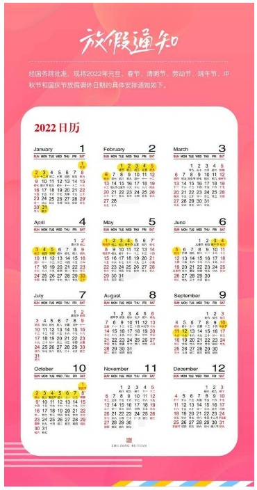 2022年節(jié)假日安排出爐了!