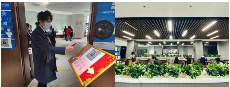 為避免人員聚集,確保園區(qū)餐廳安全有序供餐,當(dāng)前園區(qū)餐廳實(shí)行錯峰就餐、分時(shí)段用餐的模式,堂食座位數(shù)減少約60%,入場進(jìn)行健康寶掃碼、體溫檢測,就餐人員除用餐時(shí)需全程佩戴口罩,兩人一桌,避免不必要交流。