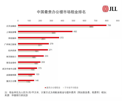 而北京作為中國大陸唯一進(jìn)入榜單前十名的城市,除了金融街、CBD和中關(guān)村,還有多個(gè)租金水平靠前的子市場未納入追蹤范圍,如果對比全球最貴辦公樓市場租金水平來看,這些主要商圈也足以進(jìn)入全球前30。