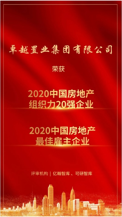 2020年12月29日,在國家會展中心上海洲際酒店在上海隆重舉行召開的“共創(chuàng)組織力——2020年中國房地產(chǎn)業(yè)組織管理峰會暨中國房地產(chǎn)企業(yè)(首屆)CHO聯(lián)席會”上,卓越地產(chǎn)榮獲 “2020中國房地產(chǎn)最佳雇主企業(yè)”,成為了眾人眼中的焦點。