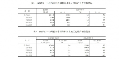 數(shù)據(jù)顯示,2020年中國(guó)東部、中部、西部及東北部地區(qū)銷售面積同比分別為7.1%、-1.9%、2.6%及-5.8%。銷售額同比增長(zhǎng)分別為14.1%、1%、5.1%及-1.5%。其中,2020年?yáng)|部地區(qū)商品房量、價(jià)增速分別高于去年9個(gè)和8個(gè)百分點(diǎn)。