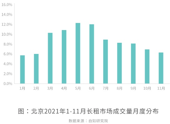 2021年北京住房租賃市場全年淡旺季明顯,同時長租機構(gòu)房源租金價格平穩(wěn),呈現(xiàn)“量變價穩(wěn)”特征。