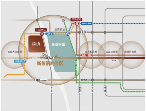 這個(gè)盤(pán)位于冬奧首鋼商務(wù)區(qū)西側(cè),距離地鐵S1線(xiàn)四道橋站僅約500米距離,向東一站便是金安橋站,兩站即蘋(píng)果園樞紐,可輕松換乘地鐵6號(hào)線(xiàn)、11號(hào)線(xiàn)與1號(hào)線(xiàn),輕松抵達(dá)冬奧首鋼園、五棵松、金融街等多個(gè)重要商圈,極好地匹配上年輕人使用公共交通出行的習(xí)慣并滿(mǎn)足日常通勤要求。