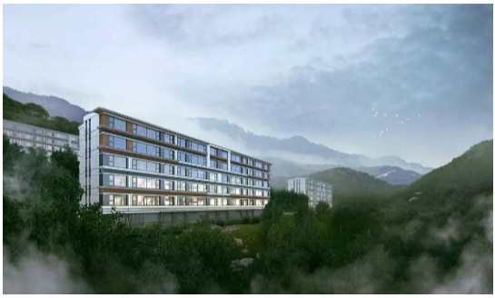 頂部露臺設(shè)計(jì),將留白由山林風(fēng)景來填充,底層以消隱手法處理,令整個(gè)建筑如漂浮山間,輕盈靈動(dòng)。
