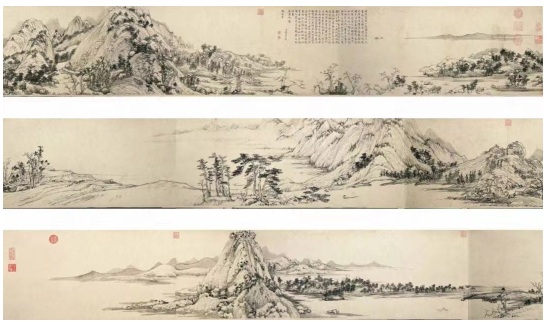 這幅千古山水第一長卷,描繪了富春江兩岸初秋的秀麗景色,以清潤的筆墨、簡遠(yuǎn)的意境,把浩渺連綿的江南山水表現(xiàn)得淋漓盡致。