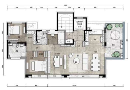 私家電梯入戶,20平米空中露臺,21米的超廣角開間,同面積段,市面上并無可與之相比的產(chǎn)品。