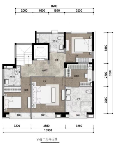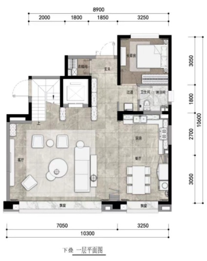 拿225平米下疊戶型來看: