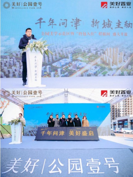 致辭結(jié)束后,在現(xiàn)場(chǎng)禮儀的引導(dǎo)下,出席活動(dòng)的領(lǐng)導(dǎo)、嘉賓為美好公園壹號(hào)營銷中心正式揭幕。