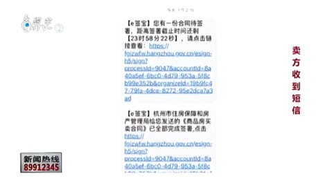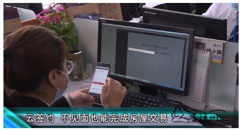 目前,身處杭州之外的購房人、售房人都可以成功“云簽約”。原來需要簽署5-7份房屋交易合同,現(xiàn)在“云簽約”電子簽名一遍即可,并且最快兩分鐘就能完成合同簽約全部流程。