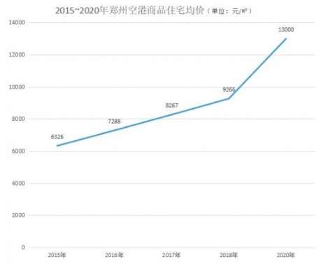 自獲批為國家級新區(qū)后,鄭州臨空經(jīng)濟示范區(qū)周邊房價年均漲幅兩千元左右。2015年至2020年,5年間這里房價已上漲至1.3萬元/㎡,5年翻了一番。