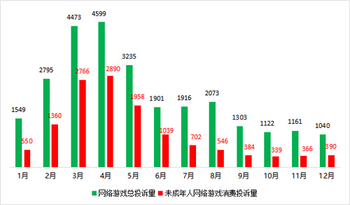 2020年受疫情影響,尤其是去年二季度,由于大部分中小學(xué)未按時(shí)開學(xué),學(xué)生在家上網(wǎng)課,接觸到手機(jī)、平板電腦等電子產(chǎn)品的機(jī)會(huì)較多,部分家長(zhǎng)疏于監(jiān)管,導(dǎo)致有關(guān)未成年人網(wǎng)絡(luò)游戲消費(fèi)問題的投訴量明顯增多。