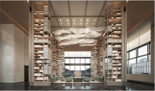 再往前走近幾步,便置身于光亮之下的洽談區(qū),與友人靜坐暢談,自在分享;或獨(dú)捧珍冊(cè),同智者對(duì)話,將繁忙且擱置,享歲月安然。若不是門外庭院樹影婆娑,偶傳來(lái)兩三聲鳥兒啼鳴,還誤以為時(shí)間也為此刻美好而感動(dòng)停滯了。