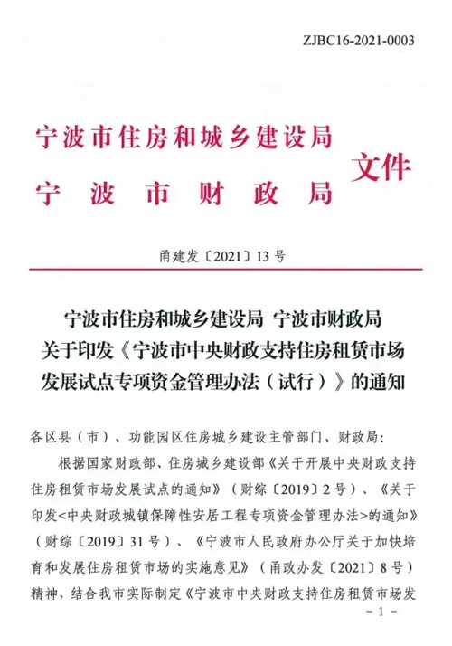 近日,寧波市住房和城鄉(xiāng)建設(shè)局、寧波市財政局聯(lián)合發(fā)文,出臺《波市中央財政支持住房租賃市場發(fā)展試點專項資金管理辦法(試行)》,進一步貫徹落實黨中央、國務(wù)院關(guān)于加快建立多主體供給、多渠道保障、租購并舉住房制度的決策部署,加快培育和發(fā)展住房租賃市場,推動房地產(chǎn)市場平穩(wěn)健康發(fā)展。