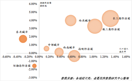 圖:各經(jīng)濟(jì)圈人口流動(dòng)與房價(jià)漲跌幅