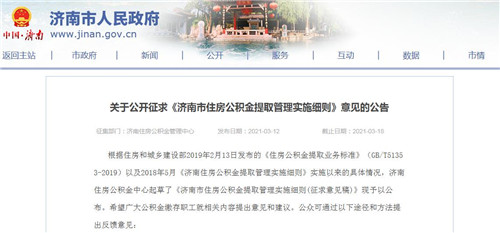 房訊網(wǎng)訊 3月12日,濟南住房公積金官網(wǎng)掛出《濟南市住房公積金提取管理實施細則(征求意見稿)》,規(guī)范住房公積金提取行為。