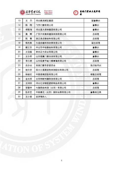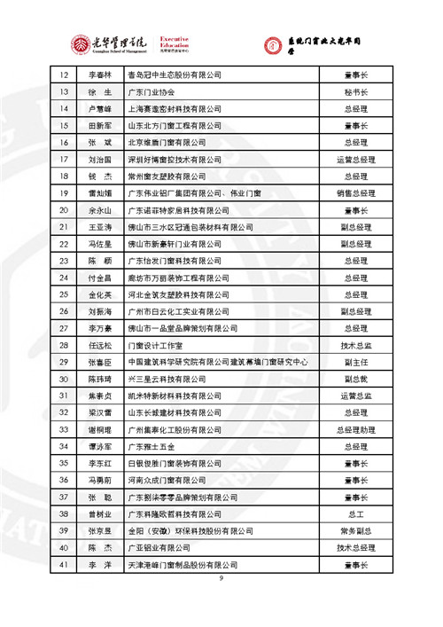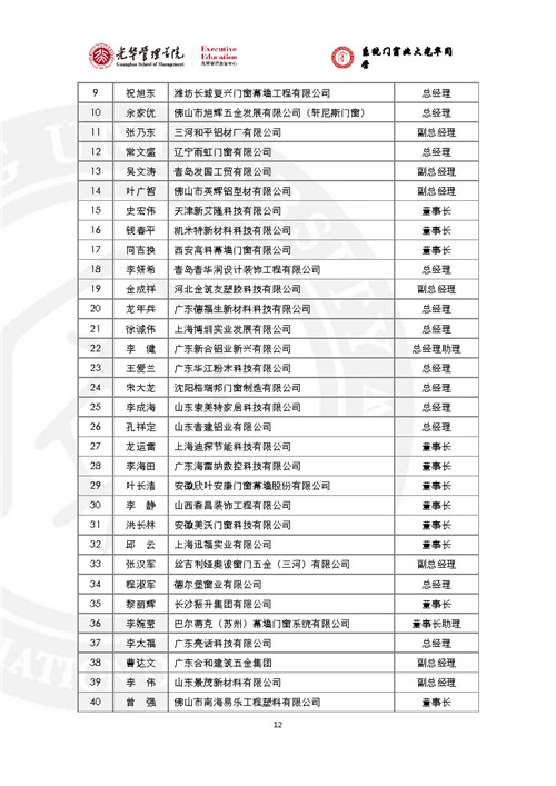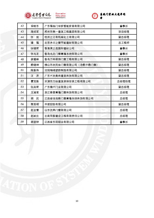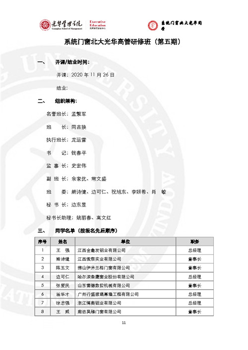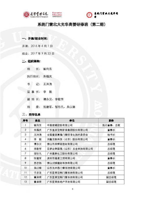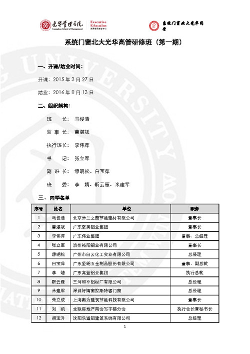 房訊網(wǎng)訊 門窗行業(yè)黃埔軍!跋到y(tǒng)門窗北大光華研修班”已辦至第五期,現(xiàn)將全部5期名錄發(fā)出來,供同行參考。