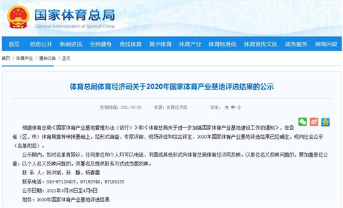 房訊網(wǎng)訊 近日,國(guó)家體育總局體育經(jīng)濟(jì)司對(duì)2020年國(guó)家體育產(chǎn)業(yè)基地評(píng)選結(jié)果進(jìn)行公示。據(jù)悉,本次公示的國(guó)家體育產(chǎn)業(yè)基地共包含三種類型,分別是13個(gè)國(guó)家體育產(chǎn)業(yè)示范基地、33個(gè)國(guó)家體育產(chǎn)業(yè)示范單位與33個(gè)國(guó)家體育產(chǎn)業(yè)示范項(xiàng)目。