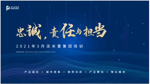 進一步強化集團員工理想信念,提升綜合素質(zhì),凝聚派米雷集團全體員工眾志成城的磅礴力量。2021年3月19日,由集團綜合管理中心牽頭組織《忠誠、責(zé)任和擔(dān)當(dāng)》的企業(yè)文化培訓(xùn),在位于上海市松江區(qū)樂都路262號派米雷·樂都隆重舉行。來自集團各職能中心、產(chǎn)業(yè)園區(qū)、城市更新、租賃住房等業(yè)務(wù)板塊的全體同仁準(zhǔn)時參加此次培訓(xùn)。