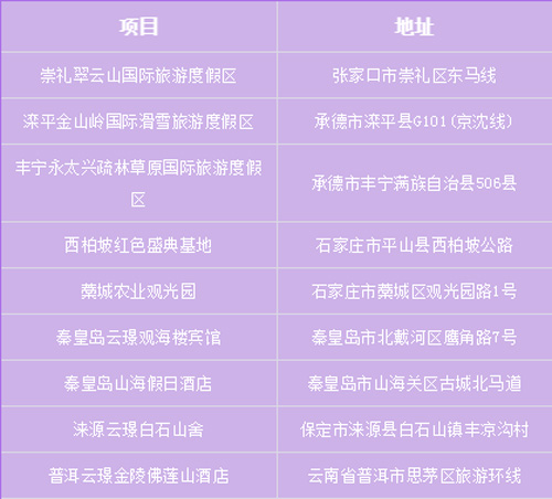冀旅薈會員在旅投集團下列酒店、景區(qū)內(nèi)使用權(quán)益卡行權(quán)消費。定向行權(quán)范圍如下: