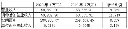 另一方面還來(lái)自于單位面積產(chǎn)值的提升。數(shù)據(jù)顯示,2020年創(chuàng)富港調(diào)整后收入增速11.71%,高出面積增速3.5個(gè)百分點(diǎn),調(diào)整后單位面積年收入0.2131萬(wàn)元,高于2019年的0.2065萬(wàn)元。