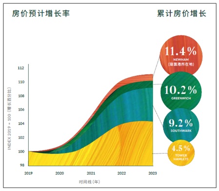 不僅如此,蒙特安維以獨(dú)到的投資眼光,精準(zhǔn)布局新興熱度區(qū)域。目前在售的優(yōu)質(zhì)樓盤——瓏茵港(Royal Eden Docks),位于倫敦東部潛力燙金C位地段皇家碼頭(Royal Docks),坐享倫敦“經(jīng)濟(jì)引擎”伊麗莎白線(Elizabeth line)紅利。數(shù)據(jù)顯示,瓏茵港所處區(qū)域的房價(jià)增速未來將超過倫敦其他大部分地區(qū),為業(yè)主創(chuàng)造不菲的投資收益。