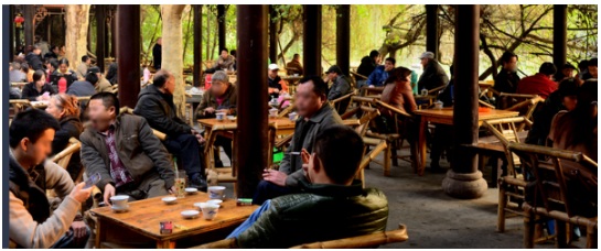 公園里,茶不斷、龍門陣擺不完,坐下來采采耳、聽聽戲、搓搓麻將。