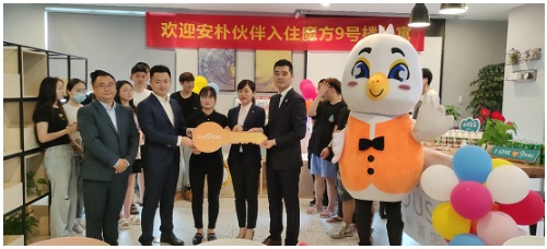 37°C被視為人體最佳體溫,或者說是最舒適的溫度!胺孔邮抢涞,但家是有溫度的。魔方9號樓公寓歡迎安樸伙伴回家,更將用心、用情,和安樸酒店一起創(chuàng)造伙伴們的37°C家!蹦Х9號樓公寓江浙及華南地區(qū)總監(jiān)謝富國在歡迎儀式上表示。