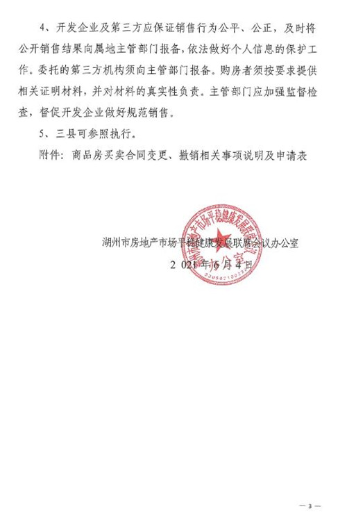 房訊網(wǎng)訊 6月4日,浙江省湖州市住房和城鄉(xiāng)建設(shè)局發(fā)布《關(guān)于進(jìn)一步加強(qiáng)中心城市商品住房合同管理有關(guān)事項的通知》!锻ㄖ访鞔_,新建商品住房在辦理合同網(wǎng)簽后,經(jīng)買賣雙方協(xié)商一致,除在父母、配偶、子女之間更名外,其他情形不得更名。實行公證搖號銷售的項目,不得更名。