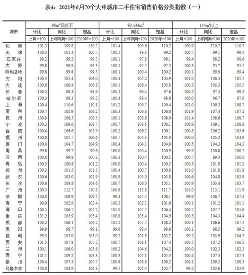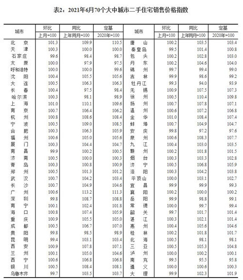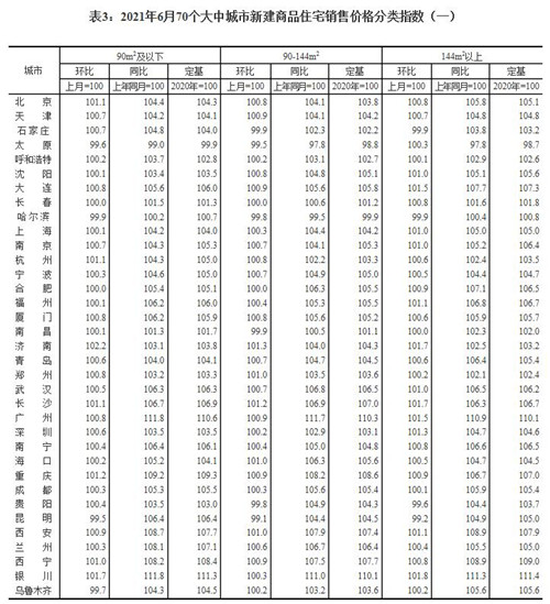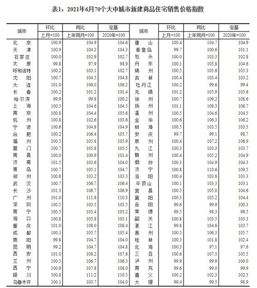 房訊網(wǎng)訊 今日,國家統(tǒng)計局發(fā)布2021年6月份70個大中城市商品住宅銷售價格變動情況。