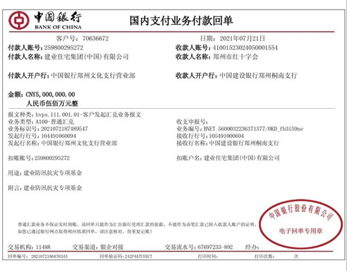 房訊網(wǎng)訊 7月21日,建業(yè)集團向鄭州市紅十字會捐贈現(xiàn)金500萬元設立“建業(yè)防汛抗災專項基金”,并同時采購救援物資支持受災地區(qū)與群眾。