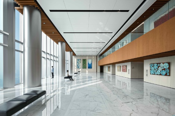 據(jù)介紹,凱華國(guó)際中心采用國(guó)內(nèi)寫字樓少見、可媲美星級(jí)酒店的無風(fēng)雨廣場(chǎng)設(shè)計(jì),這也是目前珠江新城寫字樓唯一一個(gè)無風(fēng)雨入口。此外,大樓內(nèi)部細(xì)節(jié)精心推敲,33層空中觀景大堂更是展覽、活動(dòng)和社交的絕佳場(chǎng)所,適合租戶與其訪客在定制藝術(shù)品和壯麗江景的環(huán)境中建立互動(dòng)。