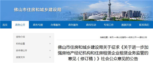 房訊網(wǎng)訊 8月17日,佛山市住房和城鄉(xiāng)建設(shè)局發(fā)布《關(guān)于進(jìn)一步加強(qiáng)房地產(chǎn)經(jīng)紀(jì)機(jī)構(gòu)和住房租賃企業(yè)租賃業(yè)務(wù)監(jiān)管的意見(修訂稿)》,向社會(huì)公眾征求意見。