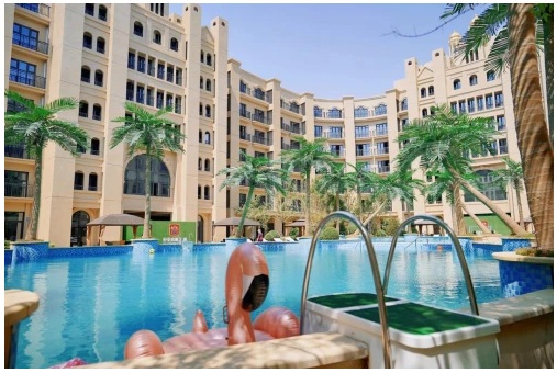 位于城堡正中的庭院,無(wú)不彰顯著高貴優(yōu)雅、落落大方。這里,容納著一座超大的泳池,斑駁的椰林樹(shù)影與湛藍(lán)的海闊天空交相倒映在澄澈的池水里。不僅是游泳嬉水之地,同樣也是舉辦酒會(huì)排隊(duì)的不二選擇。
