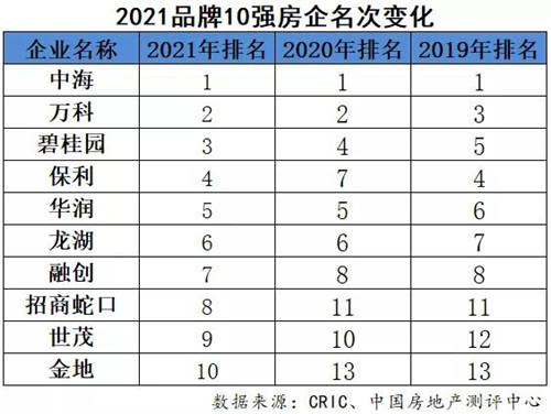 根據(jù)測(cè)評(píng)報(bào)告,榜單前三由中海、萬(wàn)科和碧桂園占據(jù)。中海繼續(xù)位列榜首,品牌價(jià)值為751億元,萬(wàn)科、碧桂園分別以669億元和573億元位列第二、第三位。保利發(fā)展、華潤(rùn)置地、龍湖、融創(chuàng)中國(guó)、招商蛇口、世茂和金地分列四到十位。報(bào)告顯示,近幾年50強(qiáng)品牌房企位次基本穩(wěn)定,2021年50強(qiáng)榜單變動(dòng)率為14%,20強(qiáng)榜單變動(dòng)率為10%,10強(qiáng)榜單變動(dòng)率為20%。