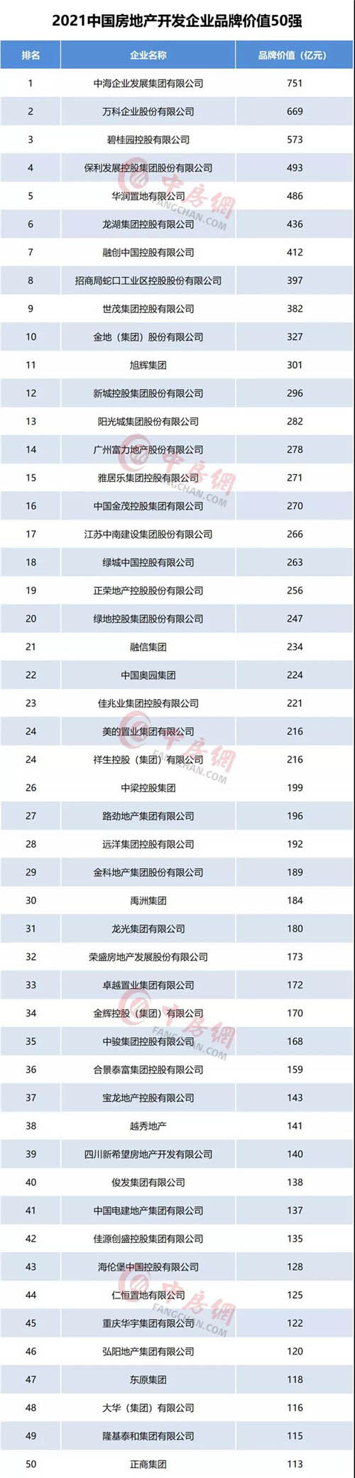 2021中國(guó)房地產(chǎn)開(kāi)發(fā)企業(yè)品牌價(jià)值系列榜單