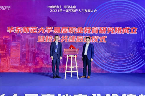 易居企業(yè)集團 CEO丁祖昱與華東師范大學教育學部職業(yè)教育與成人教育研究所所長徐國慶共同為華東師范大學易居職業(yè)教育研究院成立揭牌