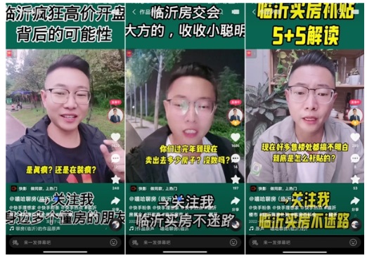 通過門店獲客越來越難,想干好房產(chǎn)行業(yè)必須尋找新渠道。期間,他關(guān)注到臨沂比較知名的主播@房產(chǎn)咨詢趙鳳艷,得知她在快手一場直播能獲客10到20組,每個月成交5到10套房子,嘻哈聊房意識到自己必須學(xué)習(xí)直播賣房。