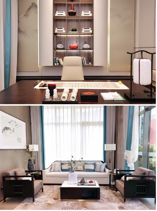 為讓商務(wù)新劇場能被觸摸到,【環(huán)山瀚園】打造了臻品示范空間,整體以新中式簡潔風格為主,玻璃幕墻外立面,當光線映照在建筑之上,勾勒出這座建筑的美學與藝術(shù)。