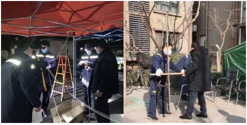 16時(shí),天津香薇邸緊急搭建2個(gè)檢測點(diǎn),架棚、拉電、布置桌椅、搬運(yùn)物資、畫隔離線等,用時(shí)3.5小時(shí),監(jiān)測點(diǎn)當(dāng)晚投入使用。