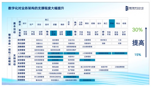 目前,陜建集團(tuán)已通過(guò)騰訊云搭建起了主數(shù)據(jù)管理平臺(tái),實(shí)現(xiàn)了各業(yè)務(wù)信息系統(tǒng)的數(shù)據(jù)集成治理,并將進(jìn)一步構(gòu)建數(shù)據(jù)湖和大數(shù)據(jù)分析系統(tǒng)。值得一提的是,其業(yè)務(wù)數(shù)字化成效也在過(guò)去一年實(shí)現(xiàn)了大幅提升,現(xiàn)已有30%的集團(tuán)業(yè)務(wù)實(shí)現(xiàn)了信息系統(tǒng)支撐。