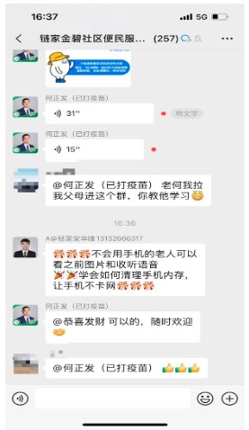 鏈家志愿者在微信群為老人答疑解惑