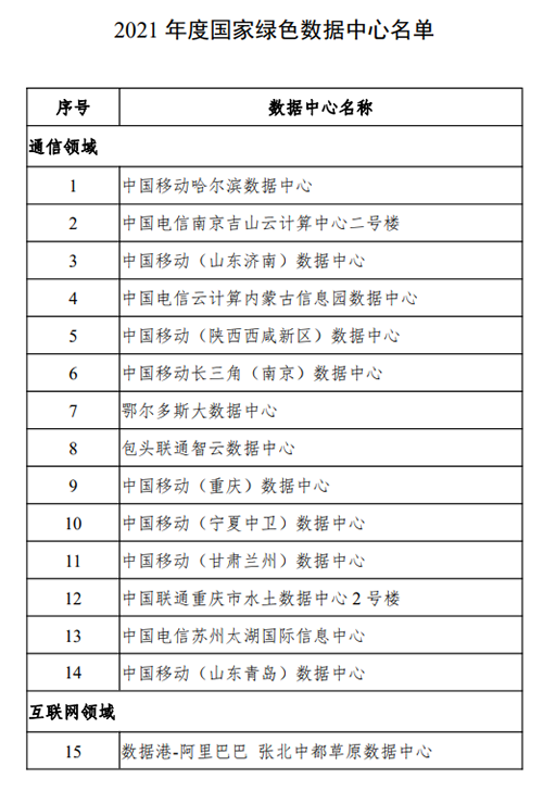 房訊網(wǎng)訊 為加快數(shù)據(jù)中心節(jié)能和能效提升,引導(dǎo)數(shù)據(jù)中心走高效、低碳、集約、循環(huán)的綠色發(fā)展道路,助力實(shí)現(xiàn)碳達(dá)峰、碳中和目標(biāo),工業(yè)和信息化部、國家發(fā)展和改革委員會、商務(wù)部、國家機(jī)關(guān)事務(wù)管理局、中國銀行保險監(jiān)督管理委員會、國家能源局確定了44家2021年度國家綠色數(shù)據(jù)中心,并于近日公示。