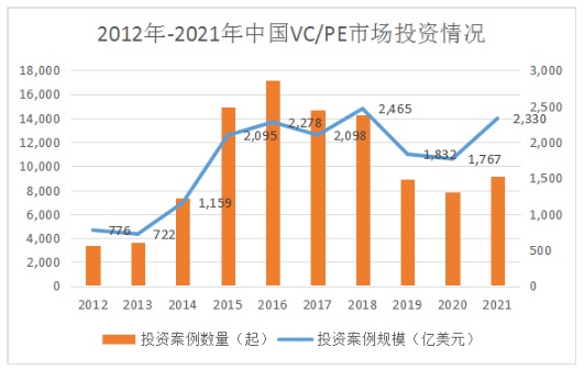 數據顯示,2021年全國新增注冊各類企業(yè)超2780萬家,相比2020年增加274萬家,增幅達10.94%。2021年中國VC/PE市場投資規(guī)模達到2330億美元,同比增長31.8%,投資案例數量9171筆,同比增長17%。