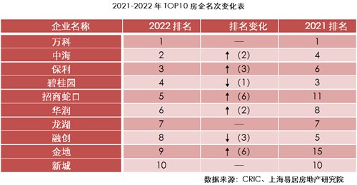 與2021年相比,2022年榜單變動(dòng)率明顯變大。其中,TOP10變動(dòng)率為20%, TOP50變動(dòng)率為26%。產(chǎn)品品質(zhì)優(yōu)秀,財(cái)務(wù)成本控制良好的房企排名提升明顯。規(guī)模巨大,但流動(dòng)性出現(xiàn)問題的房企則排名下降較多。