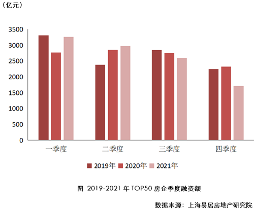 2021年,在“房住不炒”和“三道紅線”、房地產(chǎn)貸款集中度政策出臺(tái)背景下,全年政策先緊后松,房企融資呈現(xiàn)供需端持續(xù)收緊的態(tài)勢(shì)。