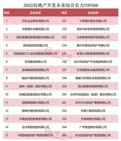2022房地產(chǎn)開發(fā)企業(yè)綜合實(shí)力TOP500測(cè)評(píng)成果